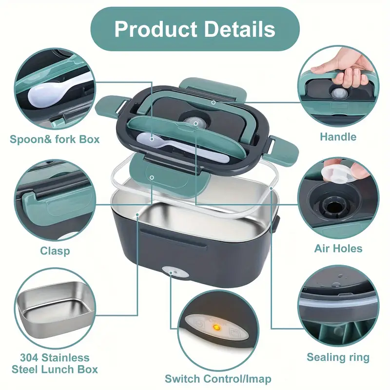 Electric Lunch Box Faster Food Warmer, 60.87oz Larger Self Heating,12V 24V 110V Portable Food Heater for Car Truck Work,Leakproof Removable Container with Cutlery for Adults – SM Markets Online